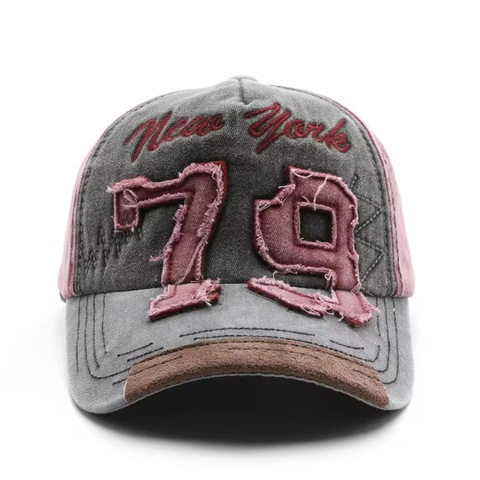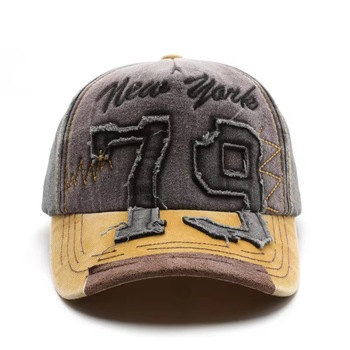 Gorra de béisbol ajustable con letras bordadas desgastadas retro de algodón personalizada al por mayor nueva gorra deportiva de tela vaquera con bloque de colores