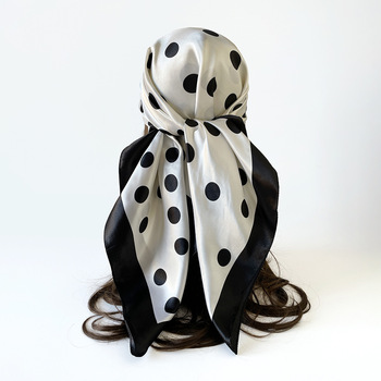 Bayanlar Polka Dot kare eşarp özel Logo OEM ODM hizmetleri toplu toptan günlük yaşam için nefes çabuk kuruyan